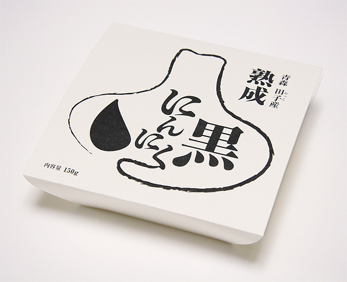 パッケージを白い紙に黒一色のみでシンプルに表現することで、黒にんにくの持 つ力強さや、