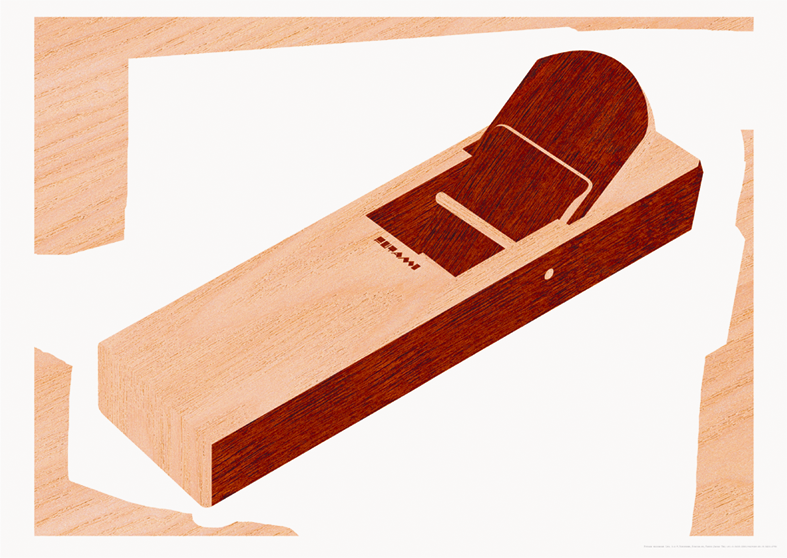 建具施行会社のイメージポスター。2種類の色の木材の組み合わせで構成した。