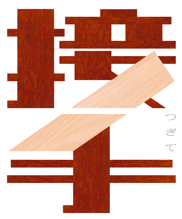 接手(つぎて)という2文字を、明るい色の木材でつないだ。