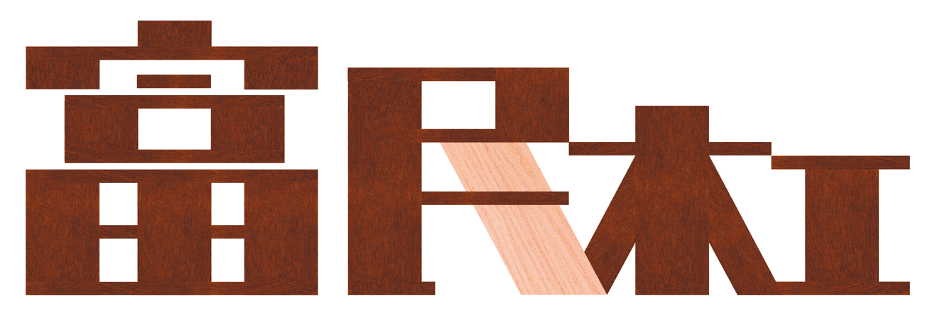 富民木工の日本語ロゴタイプ。画数の多い文字を大きく、少ない文字を小さくしてみた。